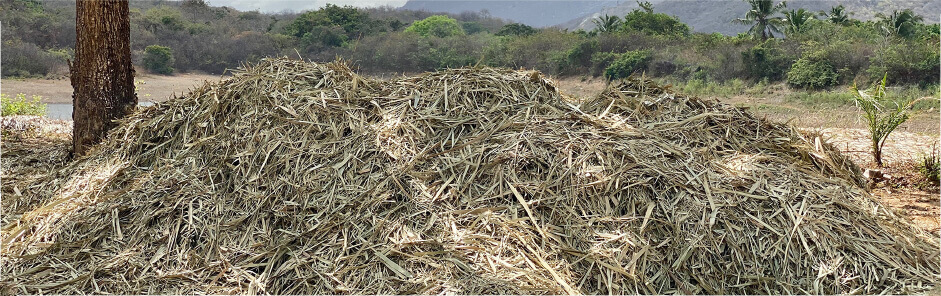 The chopped straws generated from the powder extraction machine are called “bagana”. It can be reused in compost and as a protective layer in agriculture.